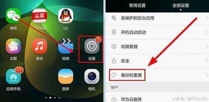 1、下面以华为手机为例,其它手机操作方法类似。打开手机点击“设置”-“备份和重置”。