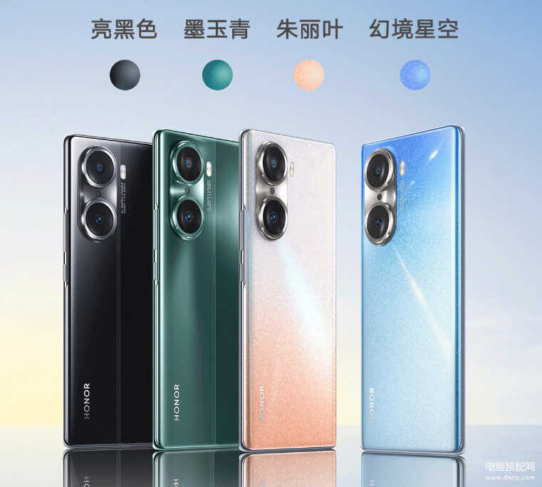 这是荣耀60的外观,包括亮黑色、墨玉青、朱丽叶和幻境星空四款配色。