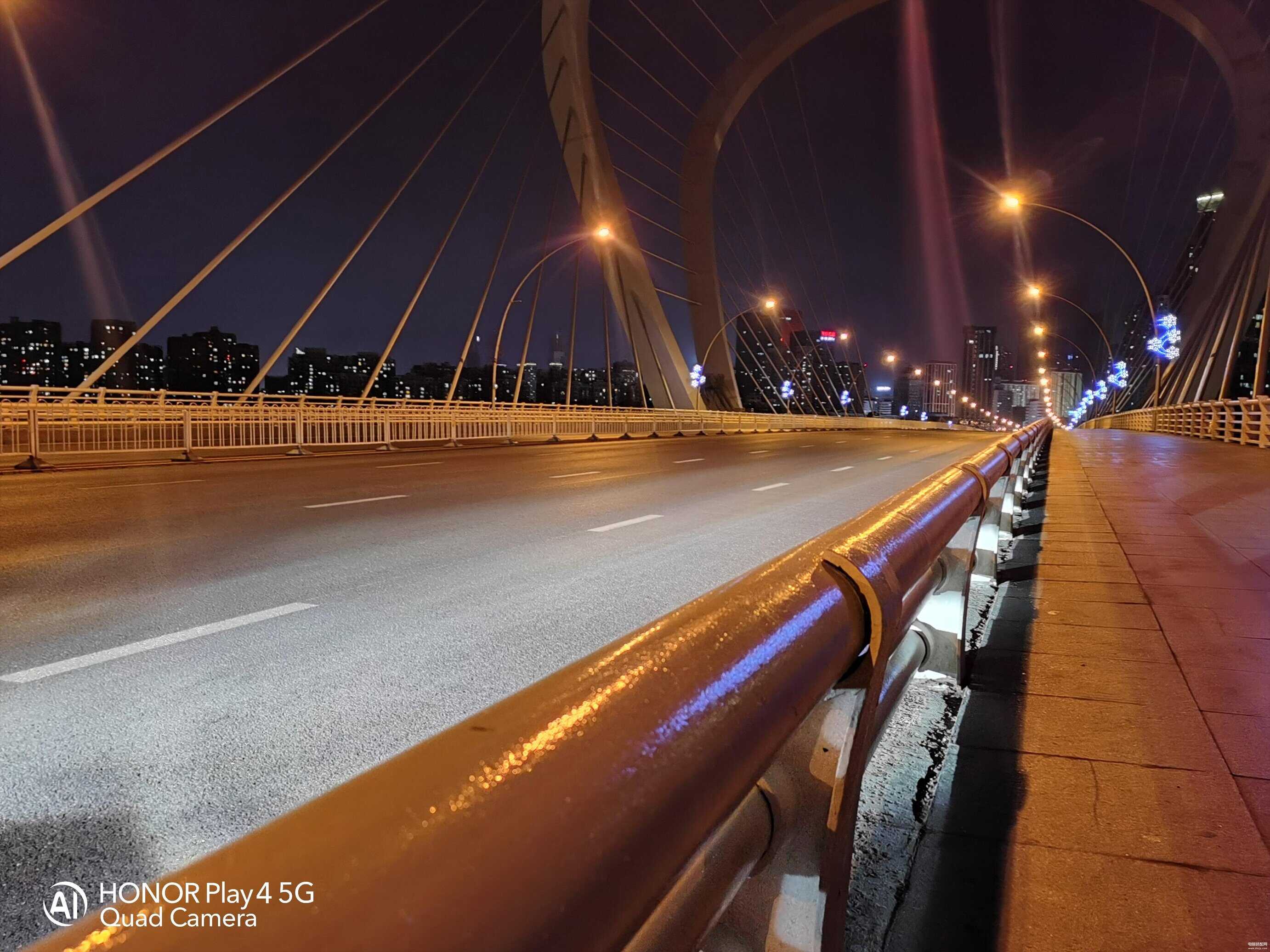 荣耀 Play4支持AIS手持超级夜景2.0功能和华为自研的猫头鹰算法,结合其1/1.7英寸超大传感器,拍摄的液晶照片清晰明亮,具有“夜视仪”的功能,很多夜里肉眼看不到的细节,通过它的夜景拍摄,都能清晰的看到,下面我们来看夜景样张。