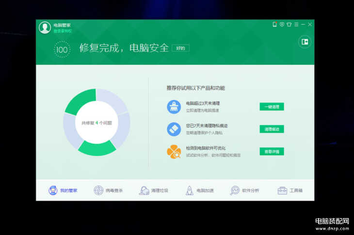 第三步:如果不行,就用电脑管家的“一键修复”功能。