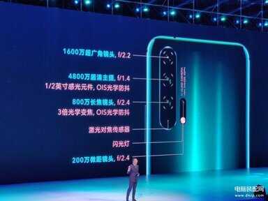 后置四颗摄像头分别为4800万像素的索尼IMX586,一枚1600万像素的超广角镜头,一枚800万像素的长焦镜头。闪光灯上方还有一枚200万像素的微距镜头。顶部边框靠一侧天线处应该是光线传感器,比较遗憾的是没有红外和耳机孔。