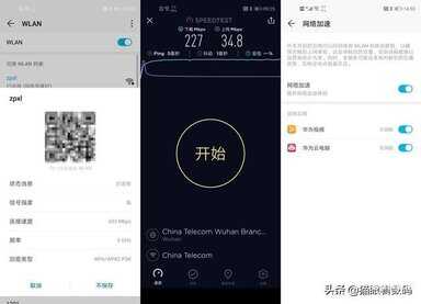 网络配置方面,荣耀20 Pro支持2.4GHz和5GHz双频WiFi,虽然在5GHz频段的连接速度最大只能达到433Mbps,但并不影响实际的下载速度。在家用200MB的带宽环境下,峰值下载速度可以达到227Mbps,轻松达到了宽带的上限。