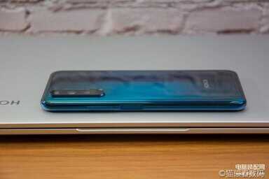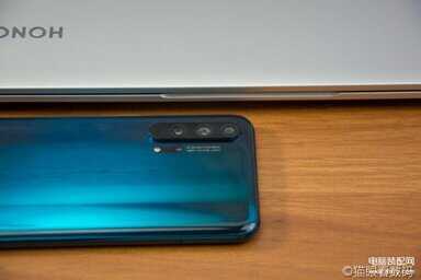 和目前绝大多数主流旗舰手机一样,荣耀20 Pro也使用了玻璃作为机身材质。我们这次拿到的是“蓝水翡翠”版本。从名字上就可以看出这是一种蓝色与绿色相结合的配色,不过真机和官网渲染图似乎有一些不同,颜色更加偏蓝一点。