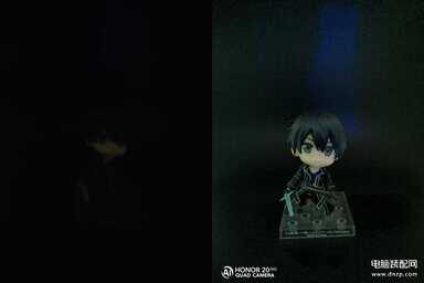 上图为黑暗环境中,普通IMX586机型(左图)和荣耀20 Pro(图右)的拍照对比,两者均为普通拍照模式,并关闭夜景功能。可以看到普通手机几乎没有拍到清晰的画面,而荣耀20 Pro的画面清晰,虽然204800感光度带来的画面噪点也十分明显,但在这种极端暗光环境下,能够拍清楚场景就算是胜利。