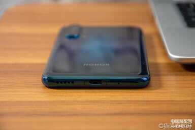 机身底部是单边扬声器的设计,中间是USB TYPE-C接口,支持4.5V/5A的低压大电流快充。由于没有了耳机孔,所以随机附送了一条TYPE-C转3.5mm转接线,但并没有附送TYPE-C耳机。