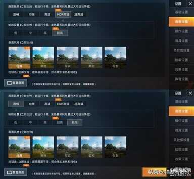 主流游戏中,《和平精英》尚未对荣耀20 Pro进行完全的适配,画面选项最高只能开到“HDR高清”和“超高帧率”。不过在选择“流畅”画面后,就可以开启60帧的“极限帧率”。