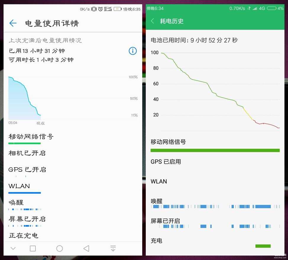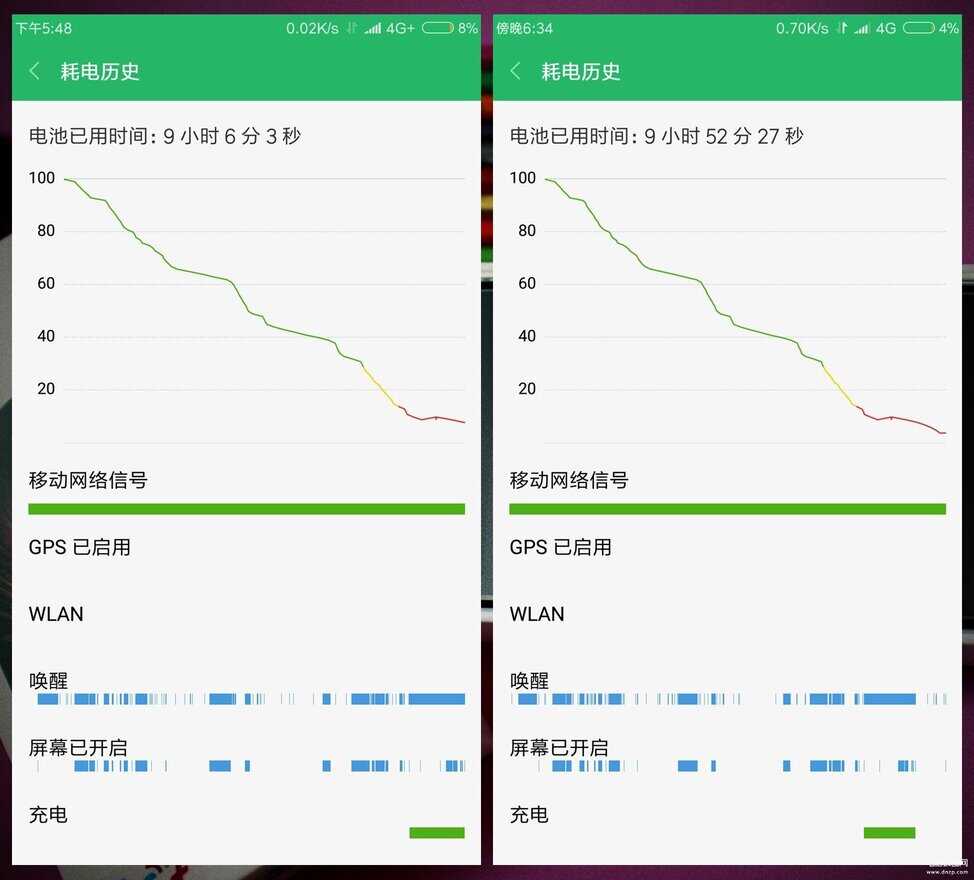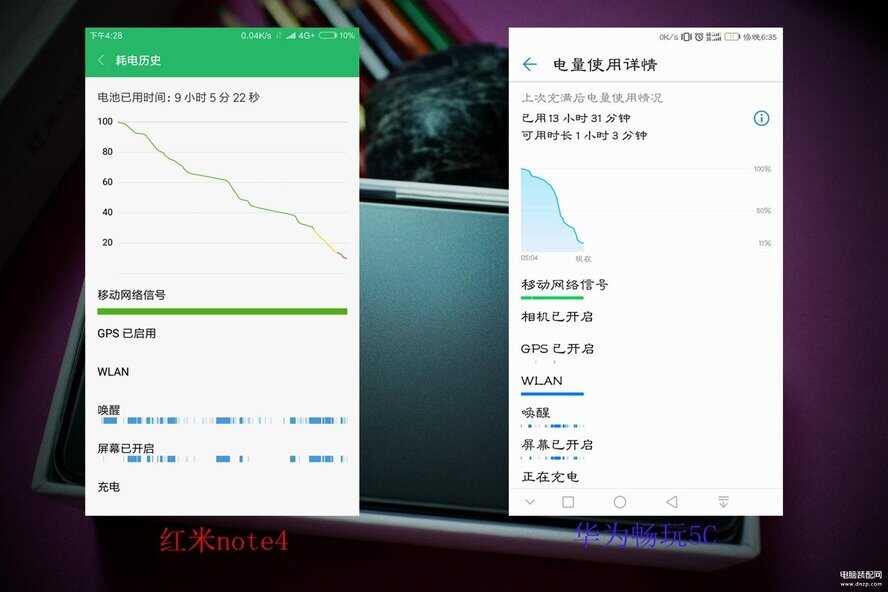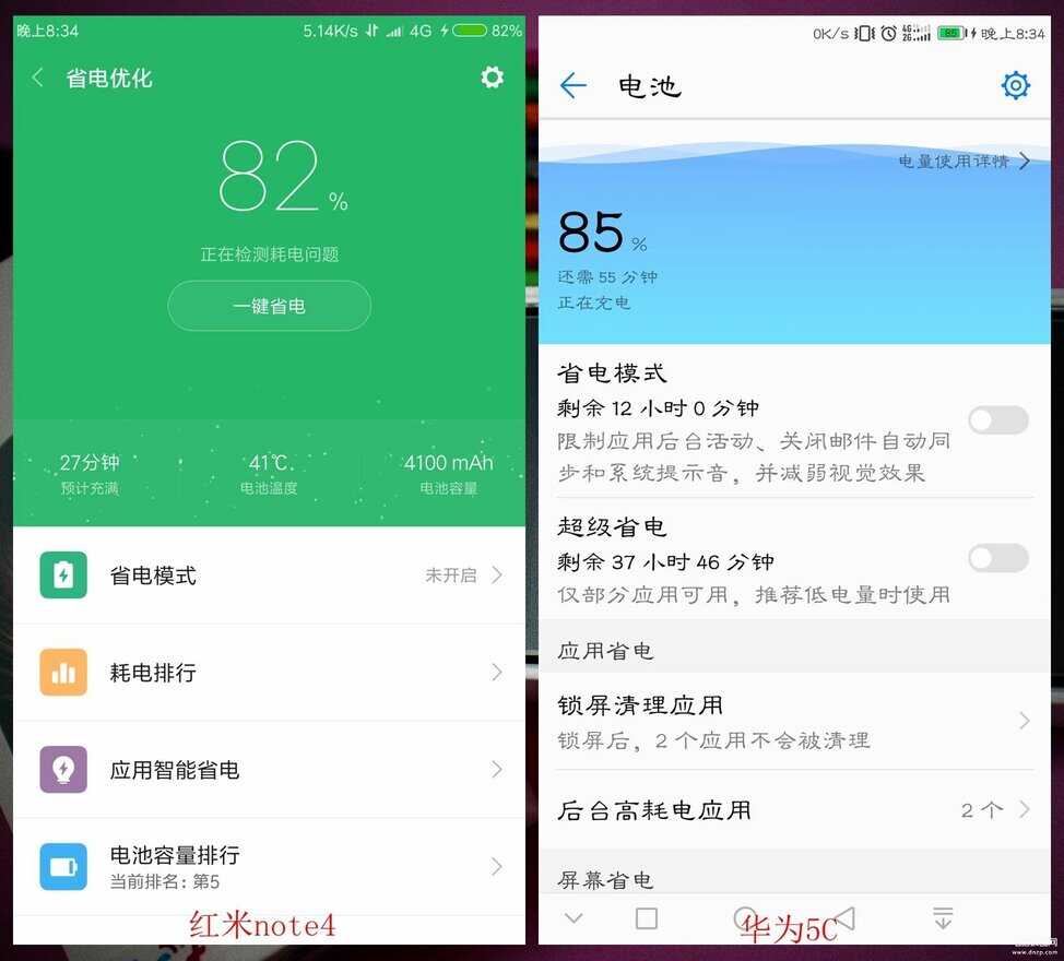 手机对于我们来说它的续航能力非常重要,这关乎这部手机在你离开家到回家这段时间需不需要充电或携带充电宝的关键要素,虽然大电量可以提高续航,但是如果设备耗电严重的话,就是有高电量也不一定有长续航,下面我们看看红米note4的4000电量与华为5C的3000电量的一天使用图。