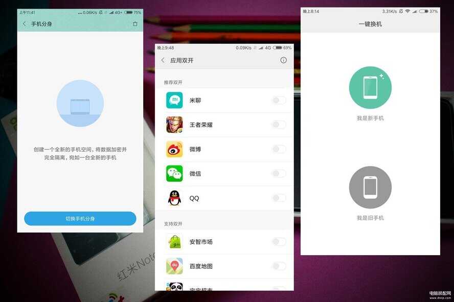 还有三个比较有趣的功能,也是最近各大厂家近期都有搞的系统功能,第一个是系统分身(可以分出另外一个干净独立MIUI系统,应用和资料需要重新添加可以加密但是会占用手机更多的空间),第二个是应用分身(因为app的特色性一般情况下一部手机同一个app只能开一个窗口,而有了这个应用分身后就能够开启两个独立的窗口登录两个账号,也就所谓的多开),第三个是手机数据转移(这个就不用多说了,就是把旧手机数据转移到新手机上)。好了红米note4的系统介绍就到这里接下来我看看我体验测试情况。