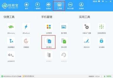 那么刷机之后,备份的资料怎么恢复呢?那就更简单啦!只要将手机连接到电脑,然后打开线刷宝,点击“工具箱”——“资料还原”就可以将资料全部还原啦!