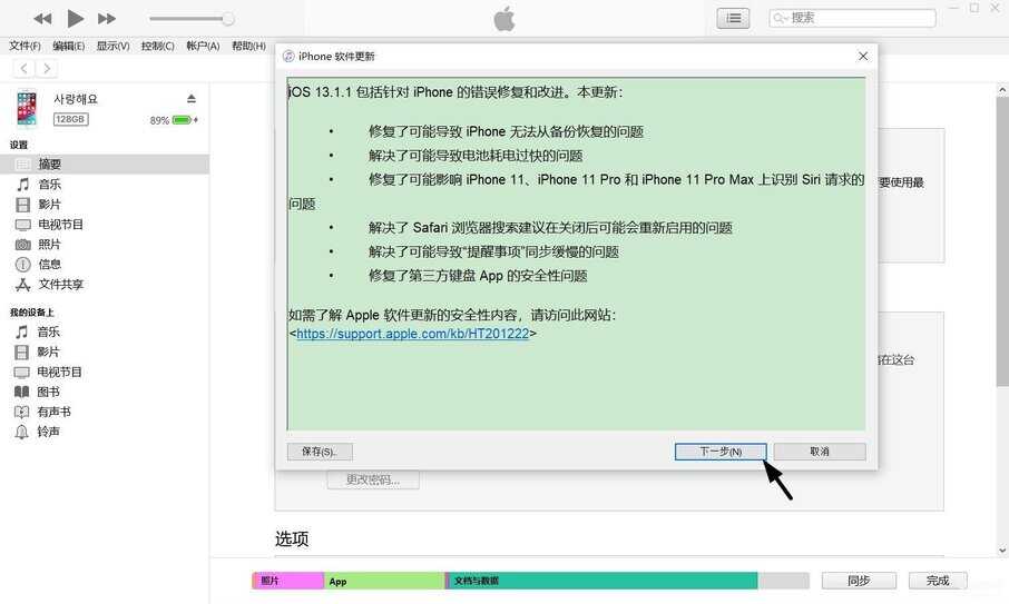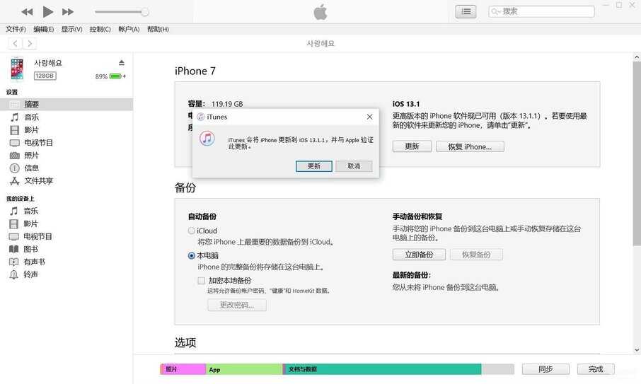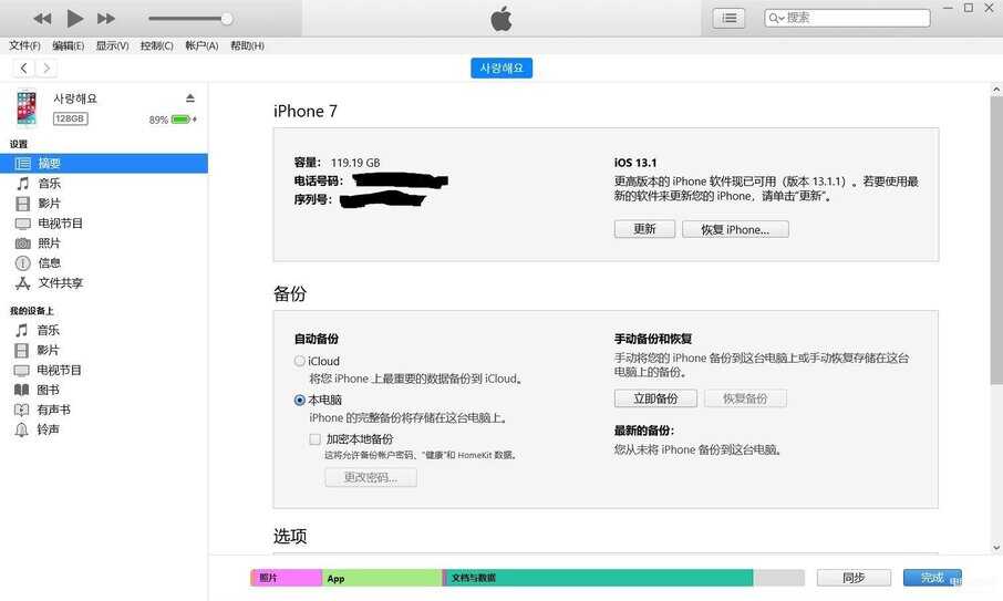 第四步:在摘要的界面点击检查更新或者更新的按钮,下方会有备份的按钮,建议更新之前先留出足够的电脑储存备份,避免数据丢失,备份的时间根据iPhone内存,电脑内存以及网速决定。