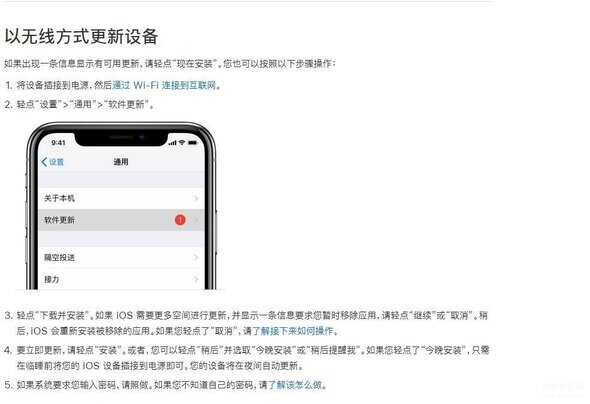 总体来说,升级方法分为两类,1.OTG升级即无线升级,也就是从手机上直接升级,在iPhone的设置-通用-软件更新,里面会有下载并安装的蓝色按钮,点击之后就会开始下载,并且在完成之后会提示安装并且需要输入锁屏密码用以确认,然后等它安装就好!