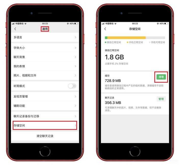 最后要说的就是微信,每天都在使用,会产生很多临时数据,非常占用内存,打开微信的【设置】-【通用】-【储存空间】,然后点击【清理】缓存。