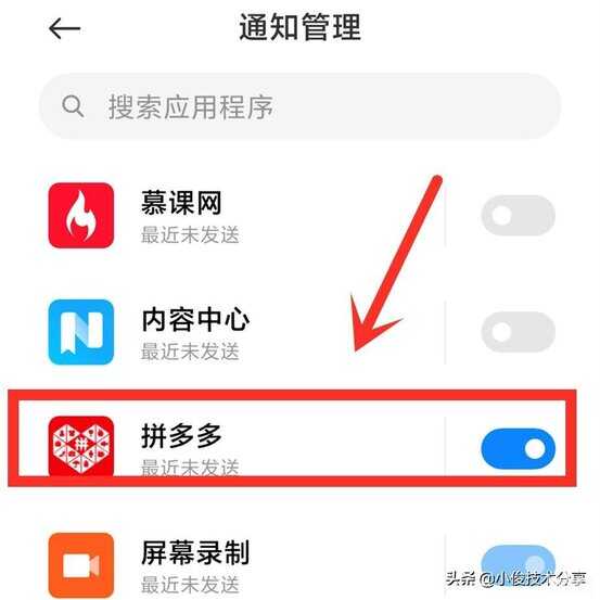 在通知管理中接着同样找到【拼多多】