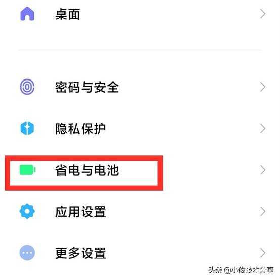 同样在设置中,找到【省电与电池】