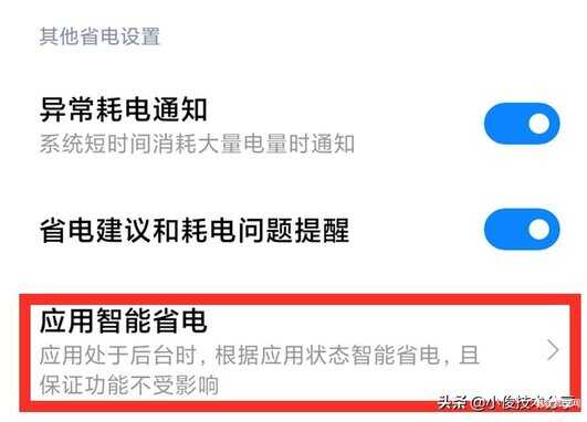 在【设置】中往下找到【应用智能省电】