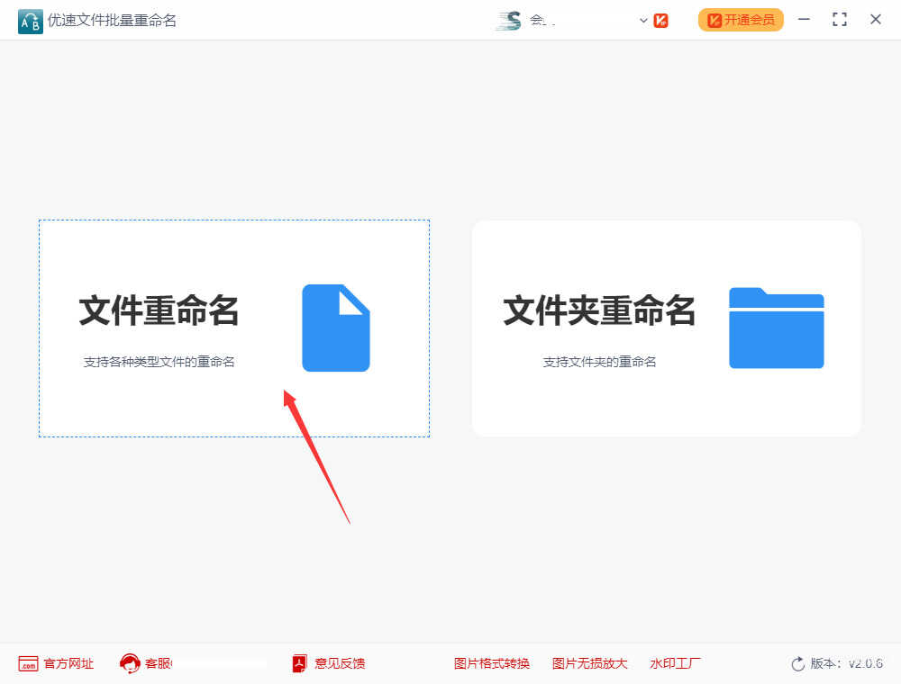 第一步,打开电脑后再打开已经安装好的“优速文件批量重命名”软件工具,点击首页上的【文件重命名】功能进入内页再进行操作。