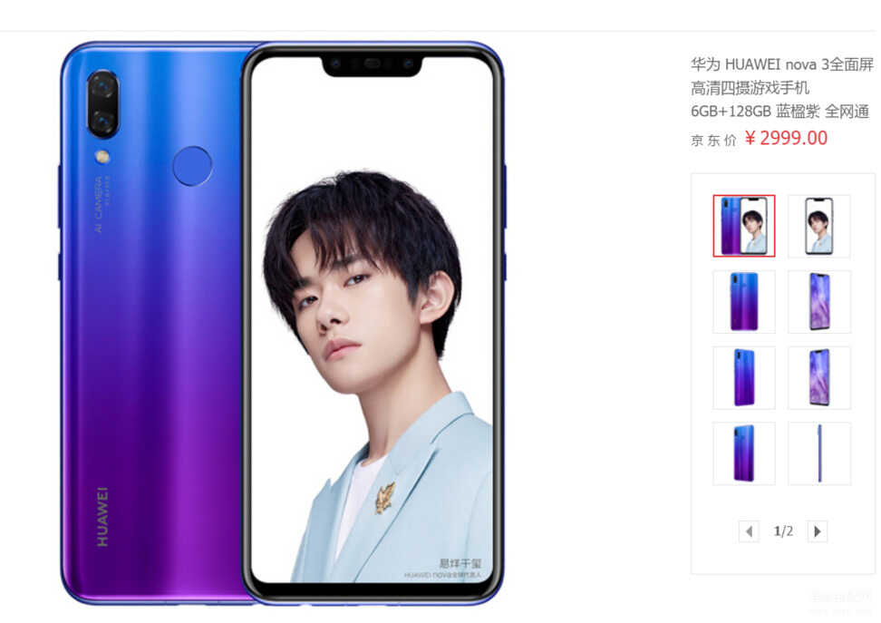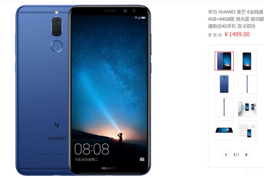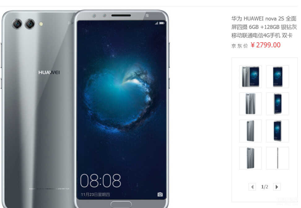 价格上(京东2018年7月25日报价)nove2s(6G+64G)2599元