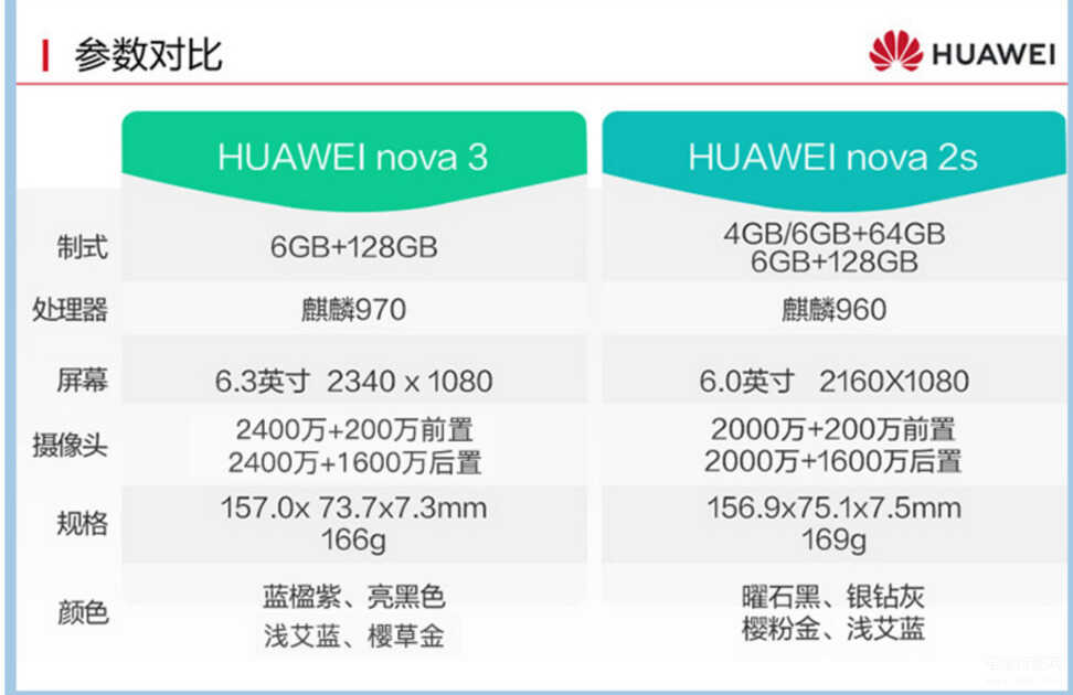 2016年10月nova第一款机器上市,主要面向女性群体,主打青春、时尚的中端机型,随着双射、快充等黑科技都变为了手机标配,nova的性价比也很高,原本有基础版和PLUS版,但随着全面屏的普及,两者合二为一,目前nova2s为上下窄边全面屏,新上市nova3为前刘海儿全面屏。处理器也很高,nova2s用的是2016年主打处理器麒麟海思960,nova3采用的是2017年主打的970处理器。