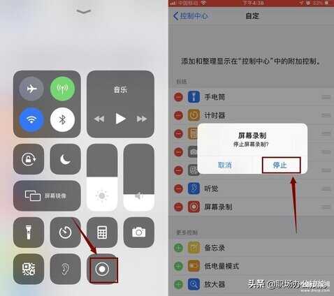 从底部开始往上滑动屏幕打开控制中心,点击“录制屏幕”图标,在321倒数之后,即可触发屏幕录制功能。如果想要停止录制,可以点击上方的红色区域,然后再选择“停止”就好了。