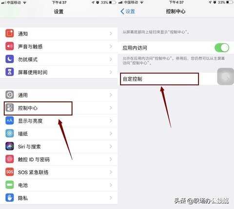 打开手机的“设置”,然后找到“控制中心”,点击“自定控制”,这个自定控制是可以添加一些除默认功能之外的,其他的功能键在里面。