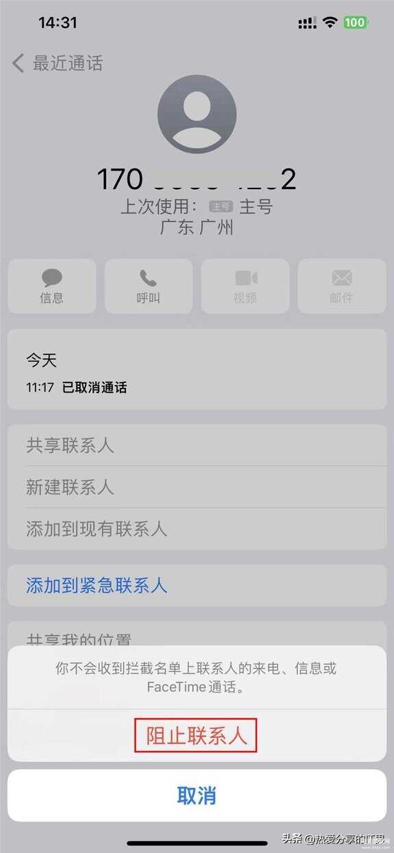 经过这样设置后,这个电话号码将被放入手机内置的的“已阻止的联系人”列表里,这个号码的所有来电、信息或FaceTime通话都会被系统拦截(当这个号码再次拨打过来时听到的总是“对方电话忙,请稍后再拨”),而我们手机上也不会有任何通知和记录的。
