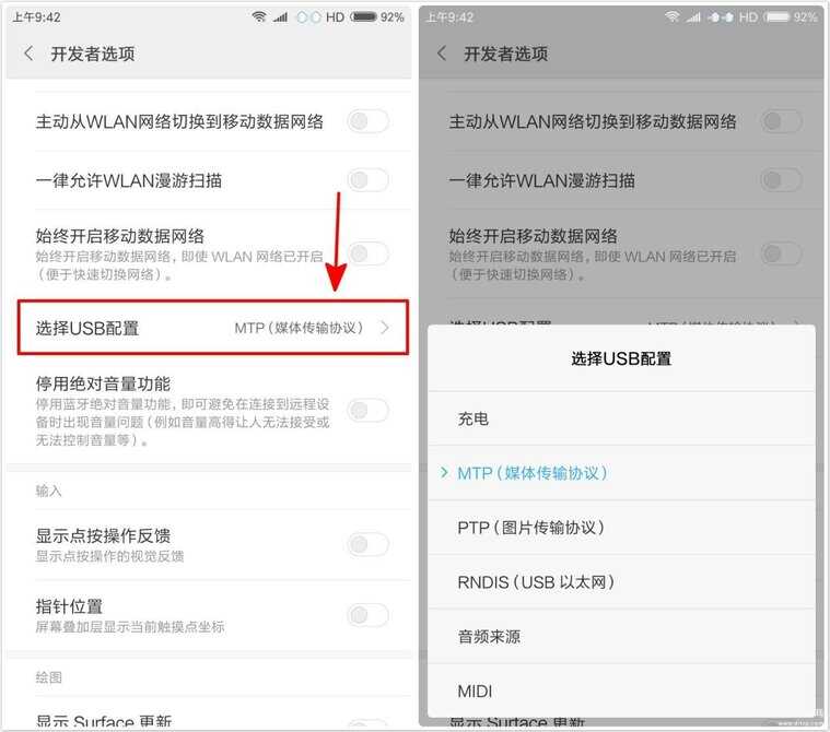 很多时候,我们都会用数据线将手机和电脑连接起来,用来传输数据等等。我们可以在手机【开发者选项】中开启【USB调试】功能,这样的话大概手机和电脑相连以后,手机就会出现几种选项供我们选择了。