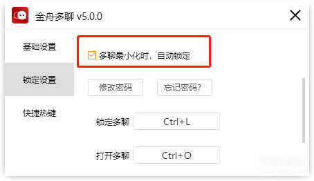 密码设置好后,点击每次退出或者最小化聊天界面后,再次打开需要输入密码才能正常看到聊天界面。