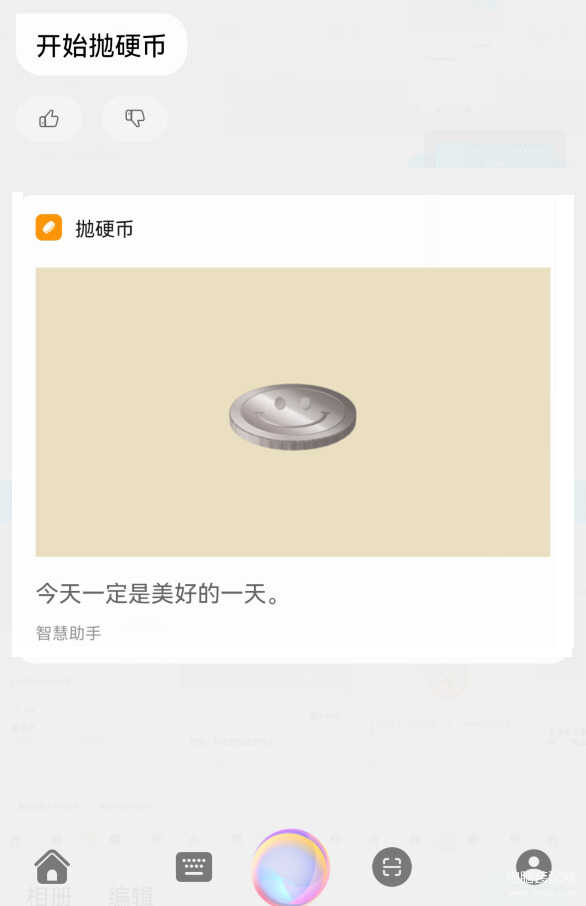 生活中,我们有时会遇到一些问题,而这些问题我们会用抛硬币的方法解决,可是现在都在用手机支付很少人会带着硬币,我们这时就可以呼叫“小艺”,对它说“抛硬币”即可。