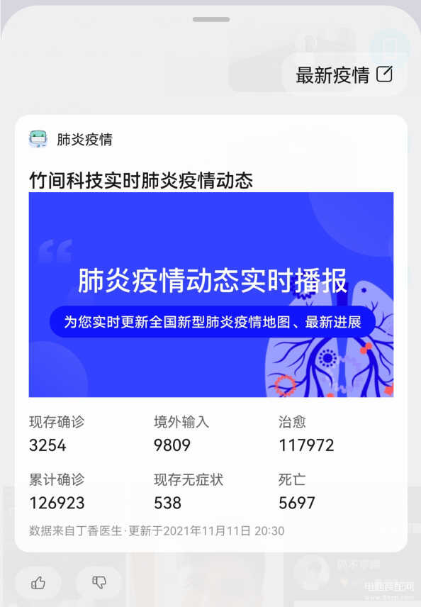 通常我们想要查看疫情最新动态时都会去度娘、今日头条、短视频等平台搜索,其实,在华为的语音助手中,就可以查看最新疫情动态,召唤“小艺”,说出“最新疫情”,即可查看疫情动态。