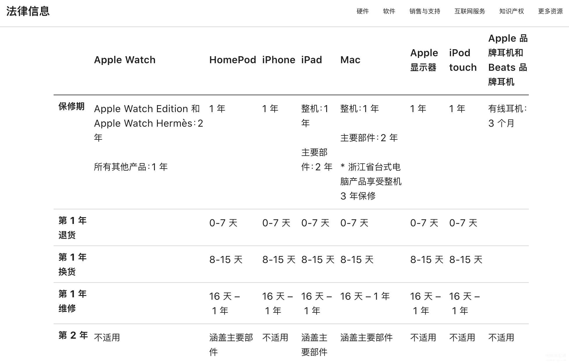 先说最特殊的三年保修,苹果在浙江地区销售的iMac和Mac mini的主要部件享受三年保修,这主要源于浙江的独一份三包政策——台式计算机主要部件保修期为三年。