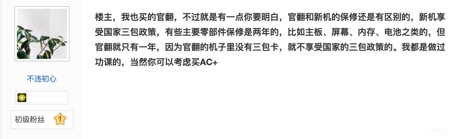 价格比常规版本便宜、功能外观没有明显区别,官翻机看起来似乎是个不错的选择。但事实上,官翻机在保修服务上挖了一个不容易被察觉的暗坑。
