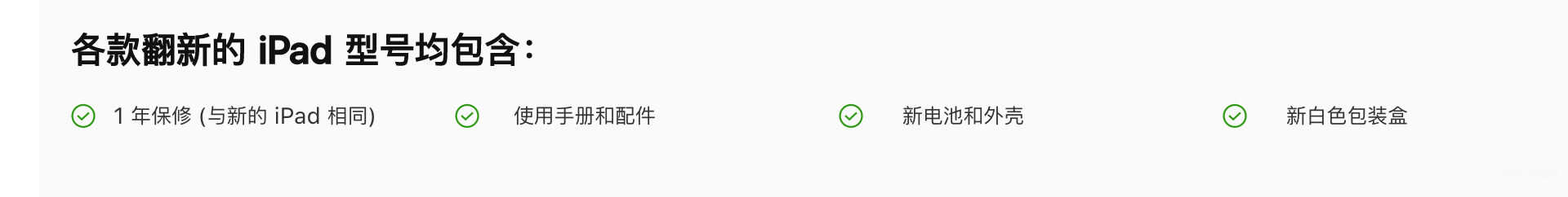 但苹果没有明确说明,翻新版iPad是否同样享受这些权益。而在官翻版iPad的对应页面中,苹果表示其包含“1年保修(与新的iPad相同)”。