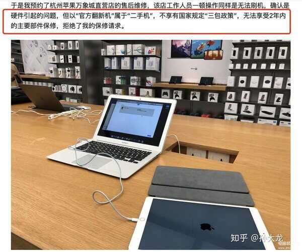 另外,根据知乎用户孙大龙的自身经历分享,官翻版iPad只享受一年保修,购买时间超过一年的官翻iPad被Apple Store售后拒保。让人感到疑惑的是,苹果官方客服表示官翻iPad享受和全新iPad一样的售后权益。但从实际执行的政策来看,苹果直营店有更高的权限。