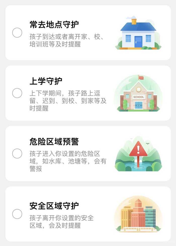很多人觉得关心孩子就是对其采用监听或来电自动接通的方式,这样就能很轻易知道孩子的状态,但小天才不希望电话手表只变成一个监视器,出于对孩子个人权利的尊重,小天才选择了一条更艰难的道路。通过更为精准的定位信息以及更为多样、多维度的状态信息来实现家长对于孩子的关心以及安全保障。小天才Z8能够实现24小时全天候守护,提供了常去地点守护、上学守护、危险区域预警以及安全区域守护。根据孩子的实时定位来为孩子提供安全保障。