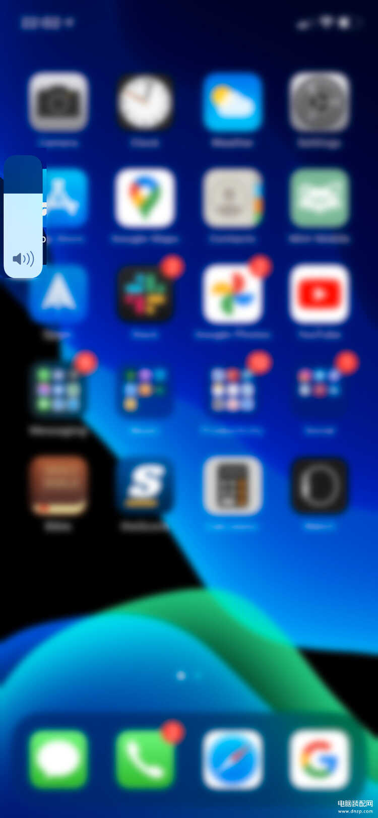 在没有 Home 键的 iPhone 上,从右上角向下滑动以打开控制中心。在带有主屏幕按钮的 iPhone 机型上,改为从屏幕底部向上轻扫。在这里,找到音量滑块并将其一直降低。