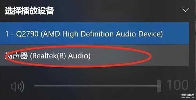 4、不断开 HDMI 线,声音图标那里,向上箭头点开选择播放设备为扬声器