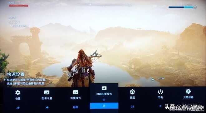 毫不夸张地说,当我打开游戏的瞬间,仿佛便被拉入了属于次世代的虚幻世界。当HDR技术、XR认知芯片与索尼电视一众黑科技加持在一起,天空中被阳光捅破的云层,远处雾气蒙蒙的群山,脚下波光粼粼的河流,一切都显得如此的自然与逼真。随手一截,每一帧都是4K壁纸般的画面。