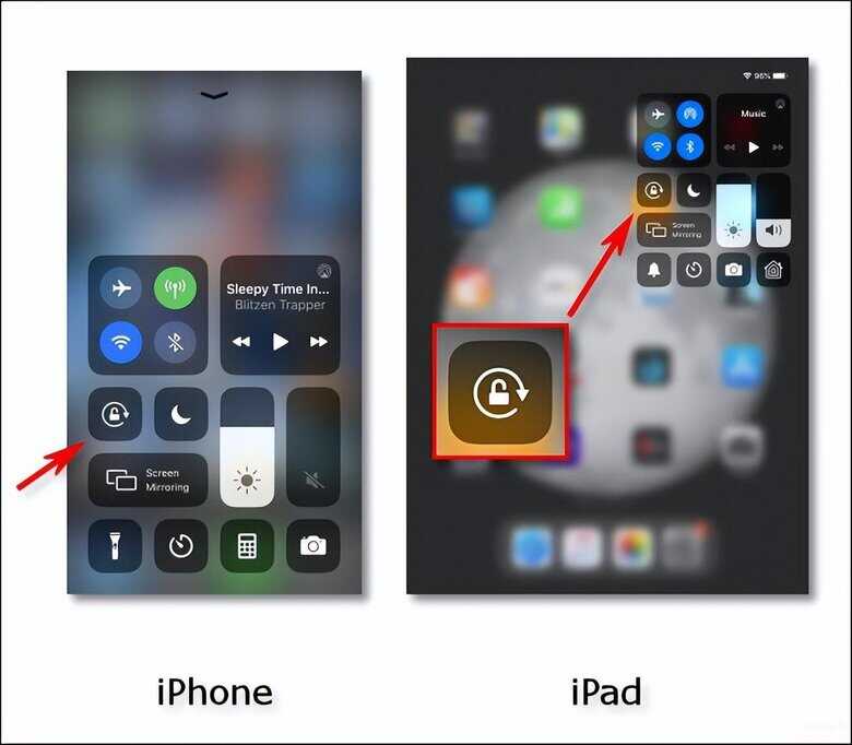 要禁用方向锁定,只需启动控制中心,然后点击方向锁定图标。