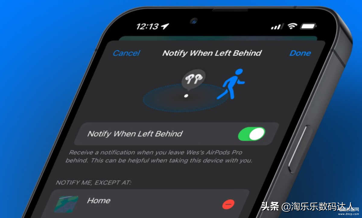 该功能与 AirTags 功能类似,当 AirPods失去蓝牙连接时会通知您。