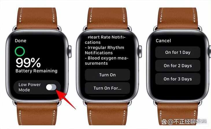如果您不手动关闭低电量模式,Apple Watch 会在电池电量达到 80% 时自动关闭。但是,如果您选择将其开启特定天数,则此方法不适用。