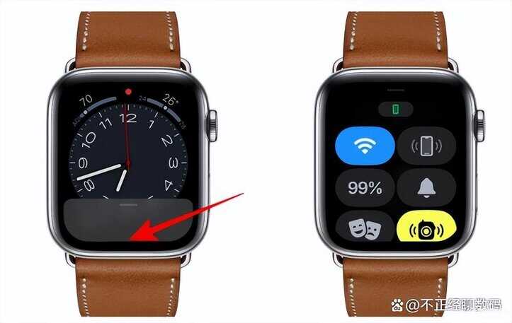 在 Apple Watch 上打开低功耗模式的最快方法是通过控制中心。从 Apple Watch 显示屏的底部边缘向上轻扫以调出控制中心。