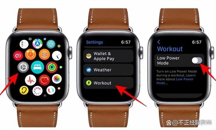 您甚至可以让手表在锻炼期间自动触发低功耗模式。为此,请打开手表上的设置应用程序,向下滚动,点击锻炼,然后切换低功耗模式。