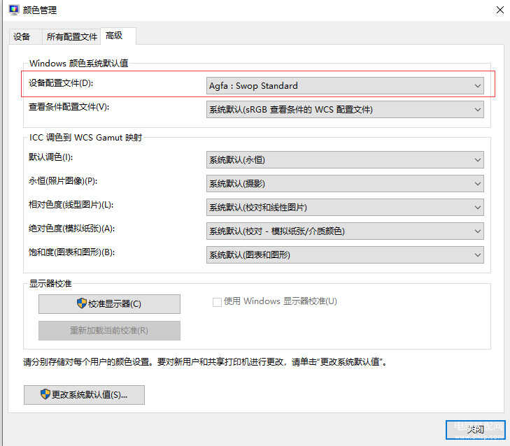 其他的确认项都是系统默认,只有设备配置文件是Agfa,不知道是什么意思,反正试试也没错,总不会比现在情况更坏吧。改为系统默认(图五)。