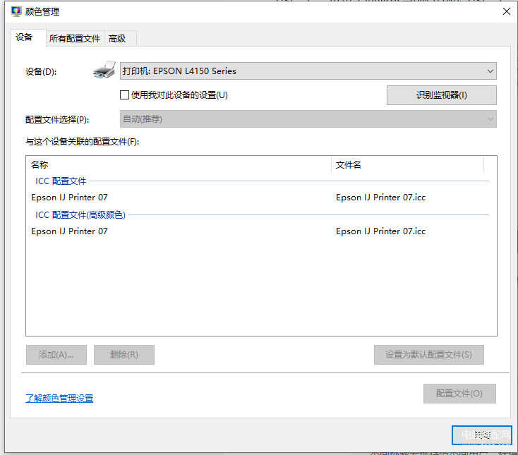 虽然没有解决,终究是提了个醒,提供了一个思路,有可能是颜色设置的问题,试试看吧。打开颜色管理(图二),设备里面显示当前打印机(图三)。