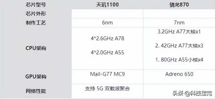 综合比较来看骁龙870要比骁龙778G不止高了一个档次,实际使用中一些搭载骁龙888系,骁龙8 Gen1芯片手机玩大型游戏那种降频,降帧的把戏,简直与骁龙870没有太大差距。回到天玑1100上来,骁龙870的性能又领先于它,不过骁龙870唯一的遗憾是必须外挂基带。