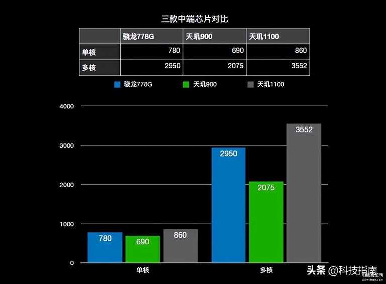因此,高通骁龙778G这款处理器是介于天玑900系与天玑1100之间。而且通过跑分也可以证明这一点。