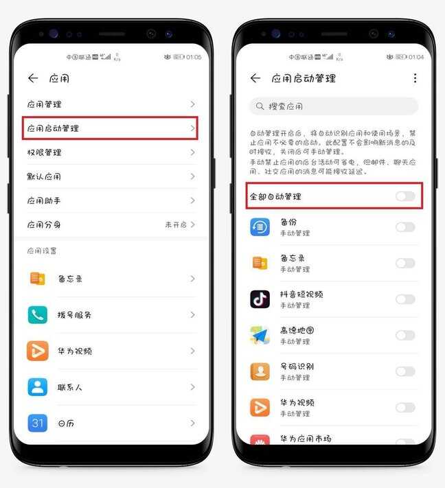 我们可以先打开手机【设置】-【应用】,进入后这里有一个【应用启动管理】,我们的手机都是默认开启全部应用的,点击全部关闭。