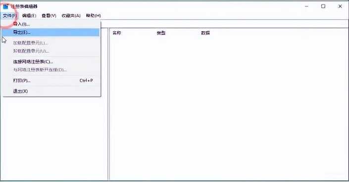 2、点击注册表左上角的文件,点击导出。如图所示: