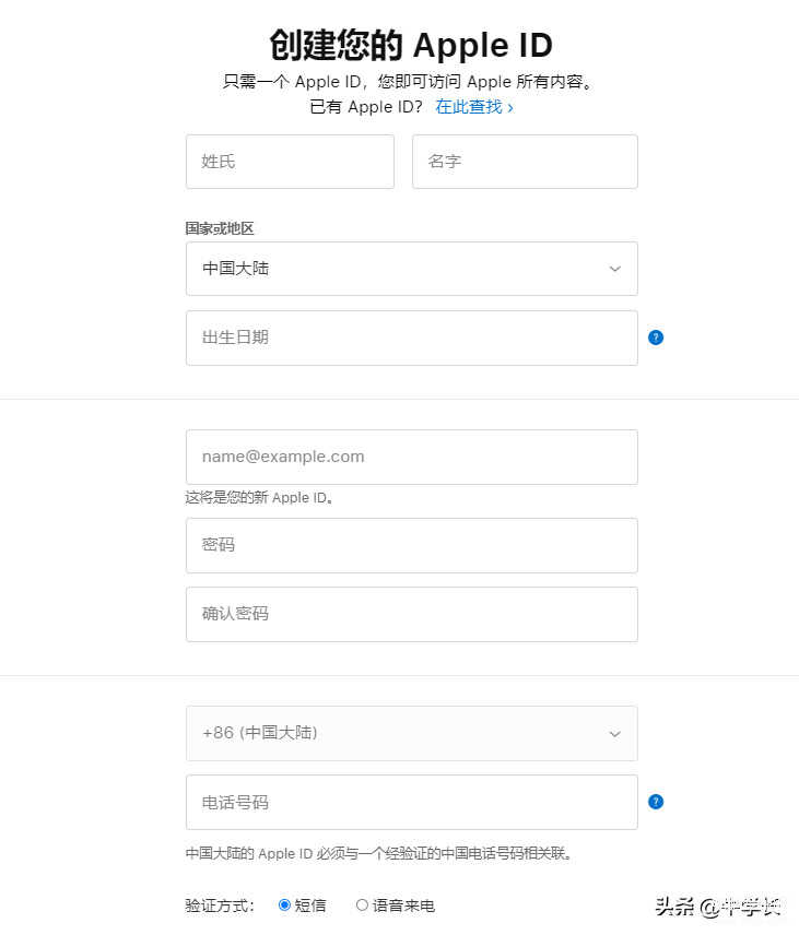 创建新ID,只需提供自己的全名、出生日期、电子邮件、电话号码,即可创建一个Apple ID账号。