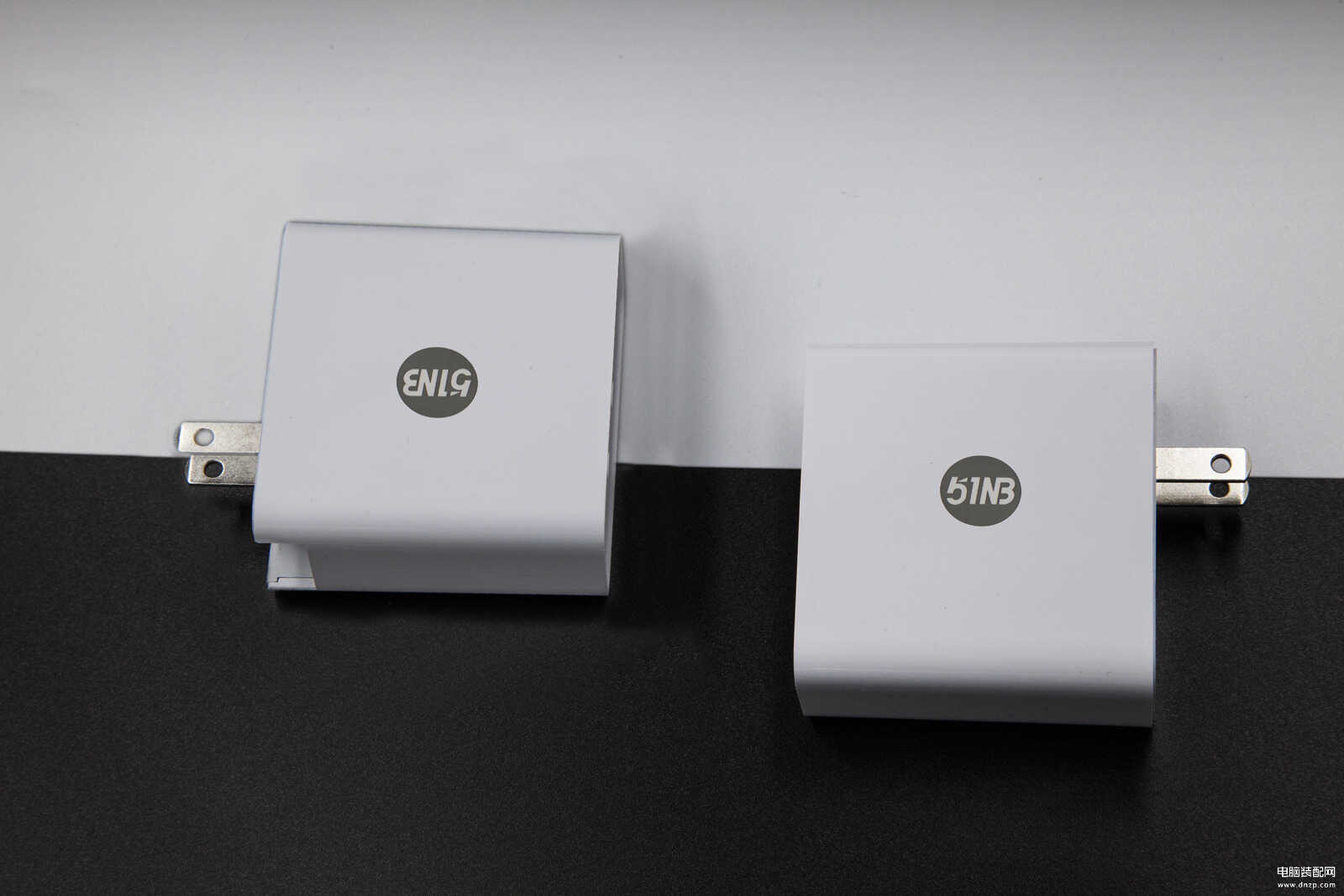 全新的51NB定制充电头体积非常迷你,体积为 6.1 x 6.3 x 3cm,重量约为136g。比起前代的小了一圈。